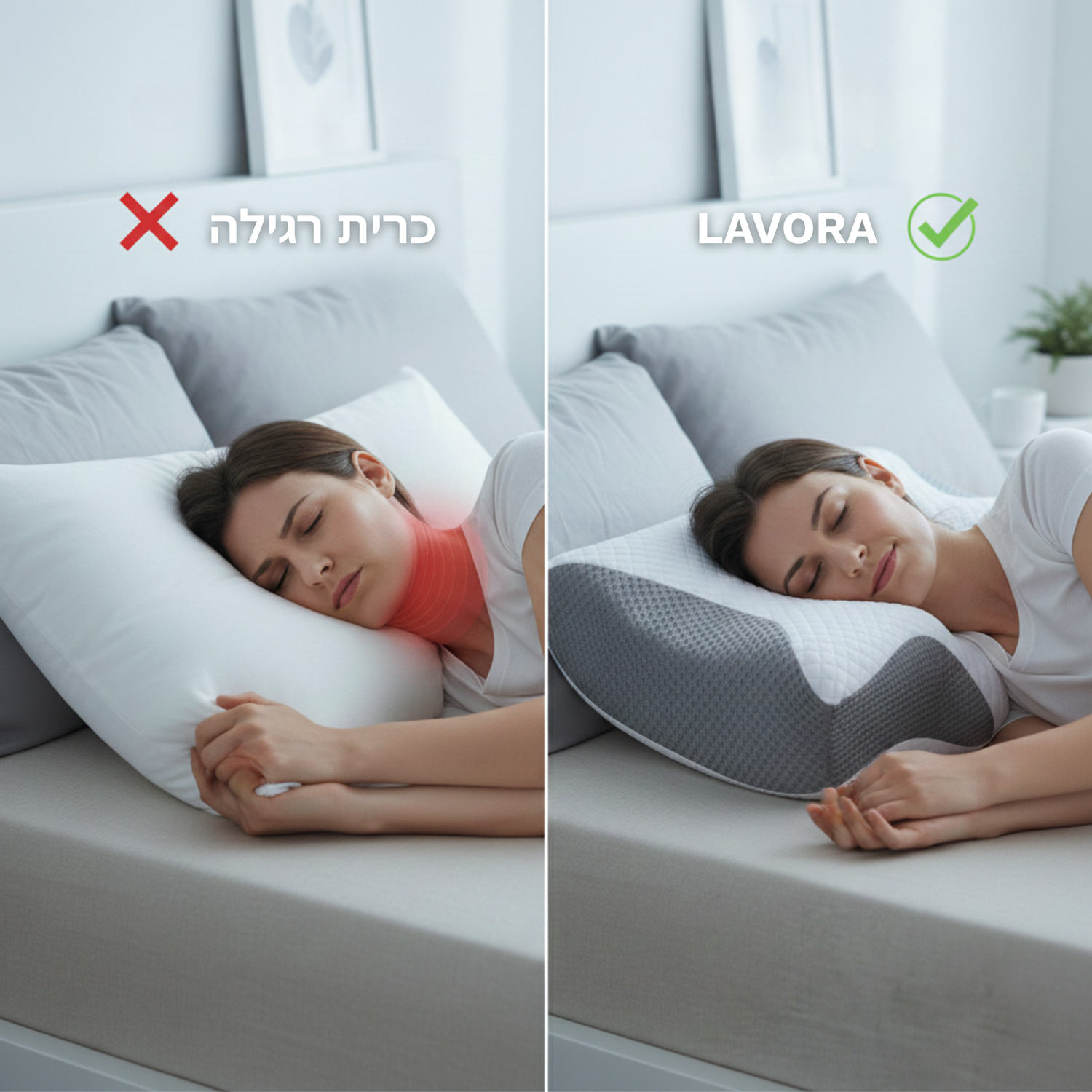 הכרית האורתופדית מבית LAVORA שומרת על מנח טבעי לאורך כל הלילה, תומכת בכם בכל תנוחה שאתם אוהבים לישון. ומפזרת את העומסים בצורה שווה, משחררת לחץ מהשרירים והחוליות ומאפשרת לגוף שלך לשקם את עצמו בצורה טבעית בכל יום מחדש!